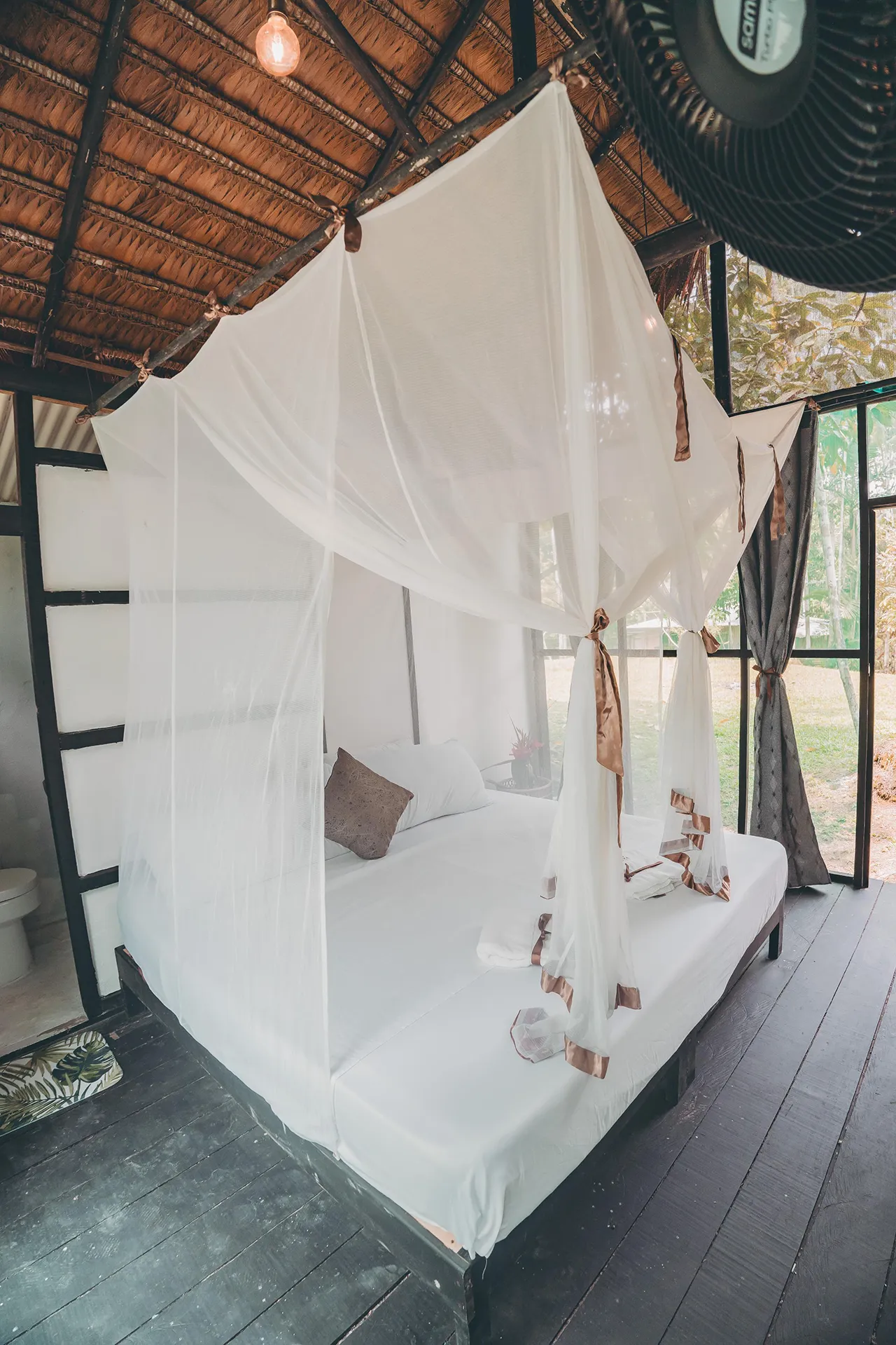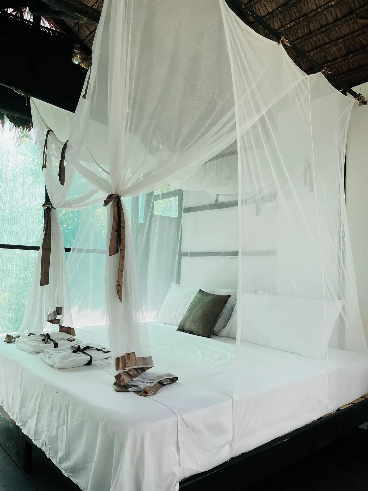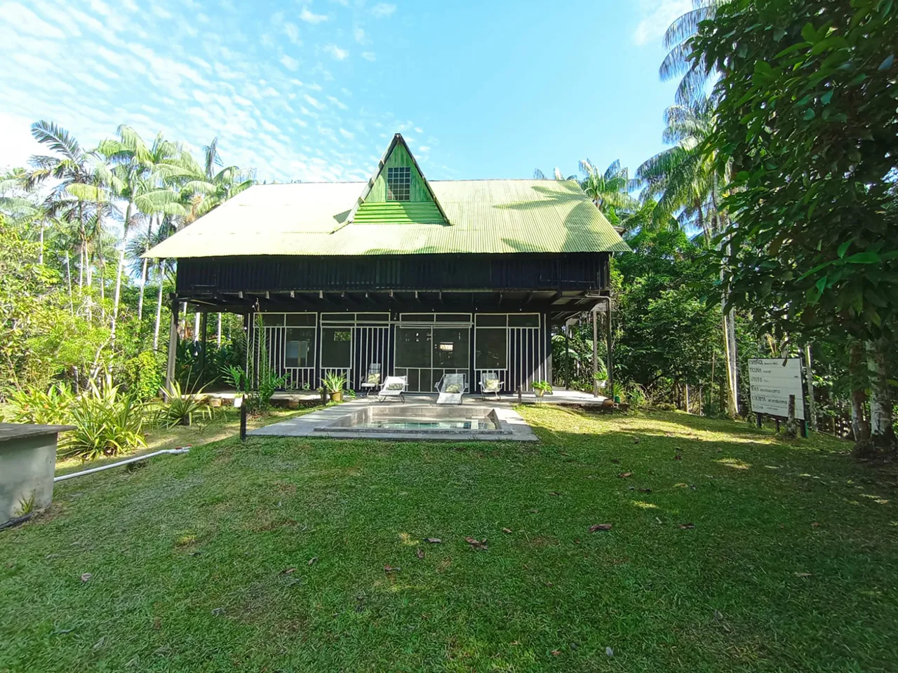 Servicios adicionales: Energía eléctrica, internet satelital Starlink, agua potable, salón de hamacas y jacuzzi en medio de la selva amazónica.